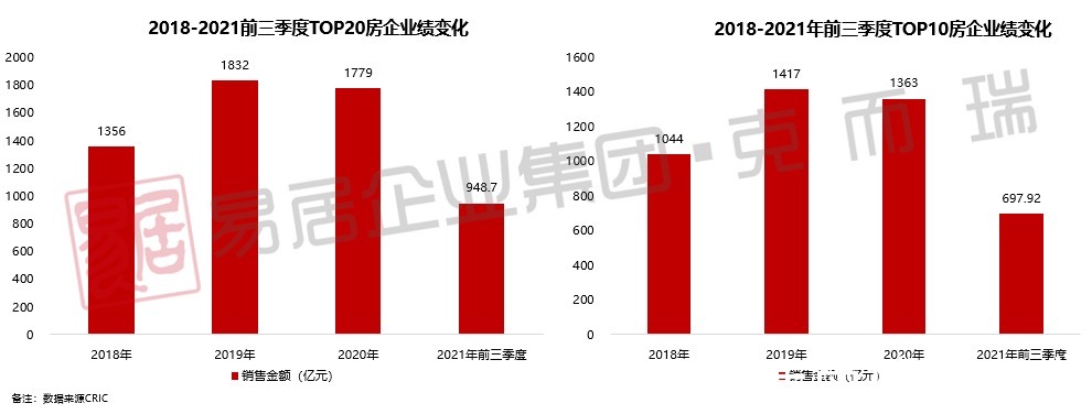??从TOP20房企年度业绩走势看,2019年为房企业绩快速增长阶段,同比上涨35%,2020年在疫情冲击小幅回落。2021年前三季度,大云南20强、10强房企业绩分别为948.70亿元、697.92亿元,分别为各自去年全年业绩的53%、51%。除沿湖环境治理部分项目下半年备案停滞外,整体市场观望情绪加深、交易放缓对业绩增长造成压力,四季度房企回款压力较大,或将催化营销市场活力。