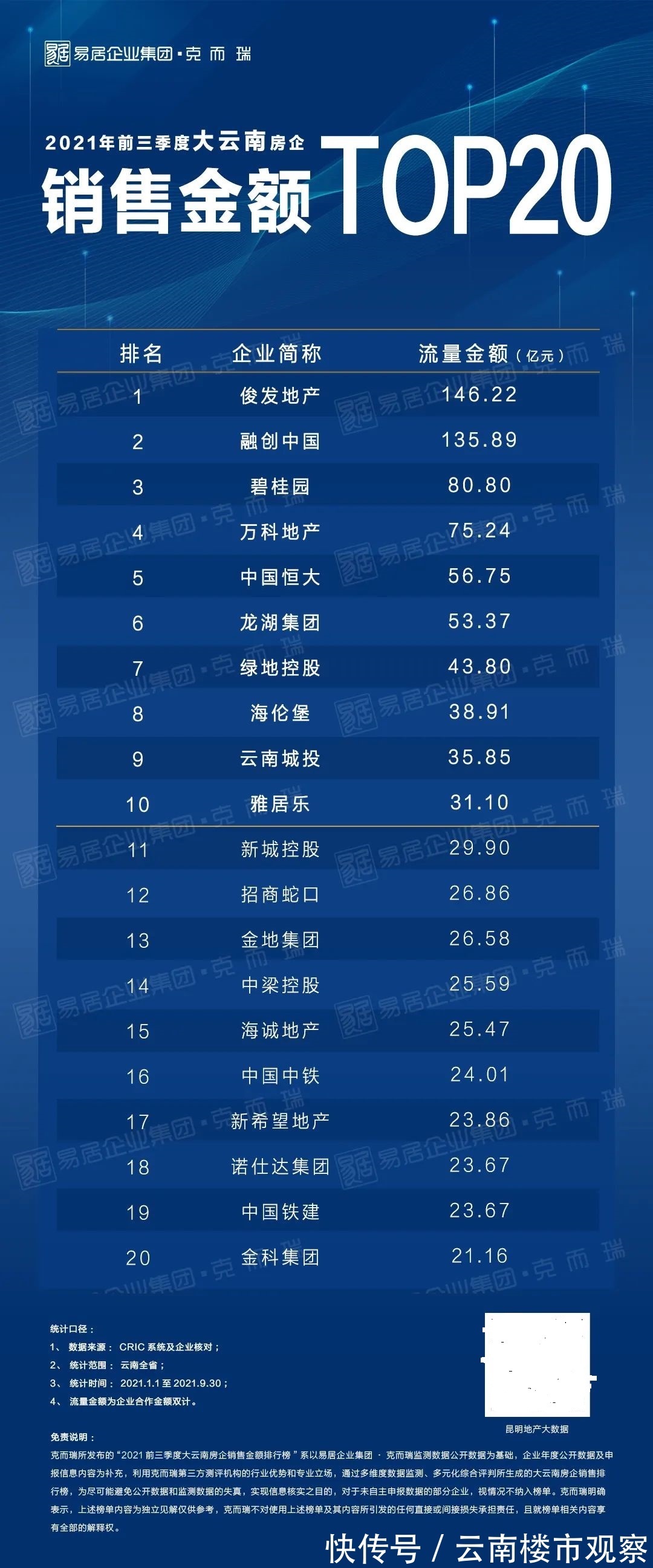 ??俊发:前三季度以146.22亿元成功卫冕榜首。俊发坚持深耕主城战略,凭借城改项目强势货储,主城创造88%业绩,多个大盘持续发力,观云海、彩云城业绩达20亿以上,俊发城、龙泉俊园、逸璟峰等5盘业绩超10亿。全省近30个在售项目积极营收同时,俊发物业成为云南省上市后备十大“金种子”企业之一、俊发客户服务年主题音乐会活动成功举办进一步增强了品牌影响与客户粘性。未来在其货储支撑下,后市可期。
