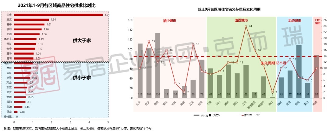 ??芒市、晋宁、玉溪放量,曲靖、大理等供远小于求,持续去存。整体存量处合理区间,滇中城市存量偏大,安宁、晋宁、嵩明存量超百万方
